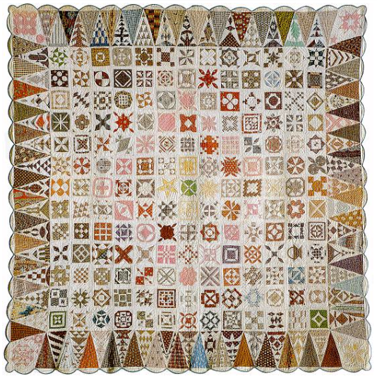 Un monument à la gloire des discussions entre amis (chacun passionnés par leurs marottes respectives), qui amènent à en apprendre plus sur des pans méconnus de l’Humanité. Ma seule incursion dans le monde fermé du patchwork pour remercier Marie de diverses bontés grandes et petites : une version personnalisée et « à clefs » de l’historique Dear Jane qu’elle affectionne, ici donc Dear Marie imprimé. « J’estime que rien de ce qui est humain ne m’est étranger » (Cicéron citant Térence). Le vélo offert au temps du Covid (et de la pénurie de vélos) méritait bien de recevoir le tirage complet.