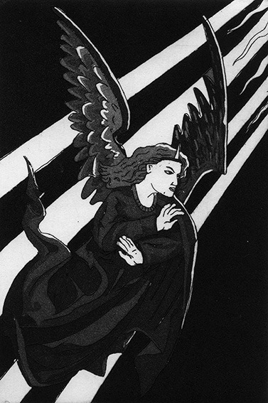 Deux images réalisées -faute de pouvoir mieux faire, ou plus utilement faire- face au deuil brutal vécu par une amie : son ange gardien, et « six états du deuil ».
