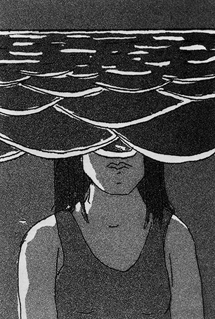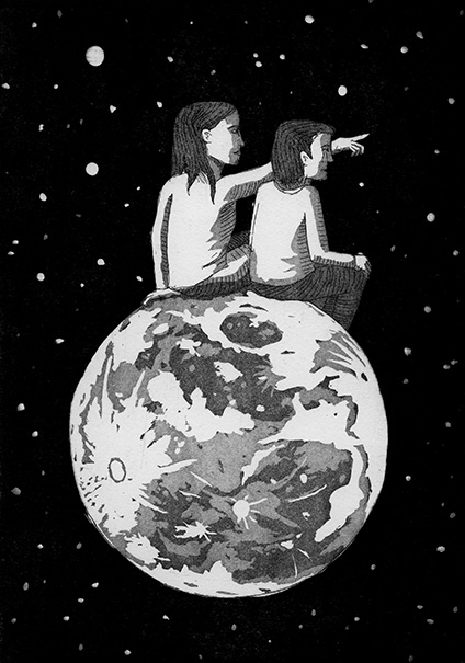 Une lino pour m’approprier la photo que je préfère de mon amie préférée.