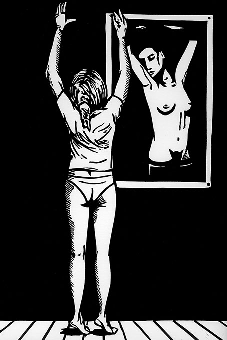 Ensuite, je suis un peu bloqué dans la série La jeune Fille et la Mort par mes carences en dessin. Pas facile de passer de la calavera à une sorte de demi-réalisme, et pour moitié les plaques me frustrent. J’ai passé quelques excellentes années adolescentes à l’académie de Saint-Josse chez Daniel Renders (je n’ai plus arrêté de griffonner depuis). Mais à 16 ans le passage à Saint-Gilles chez un prof de dessin de modèle, sosie de d’Artagnan, m’a un peu calmé (et encore, cette Aca de Saint-Gilles n’était pas encore le repaire de la recherche conceptuelle qu’elle est devenue). Je n’étais pas vraiment prêt à cette époque à dessiner un mec zarbi à poil, à la mine de plomb.