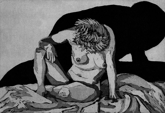 Cette exaltante recherche aboutit à ces gravures, work in progress, j’en posterai d’autres au fil de l’année. Ce sera l’occasion aussi de chipoter un peu avec d’autres techniques comme le vernis mou.