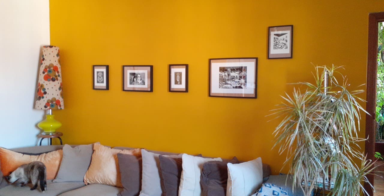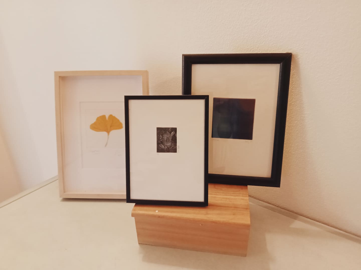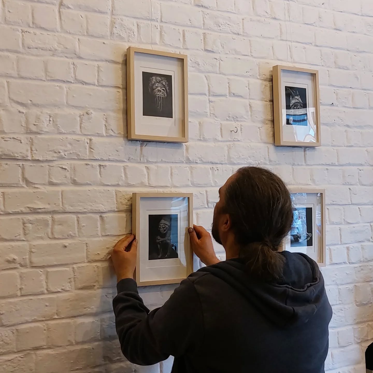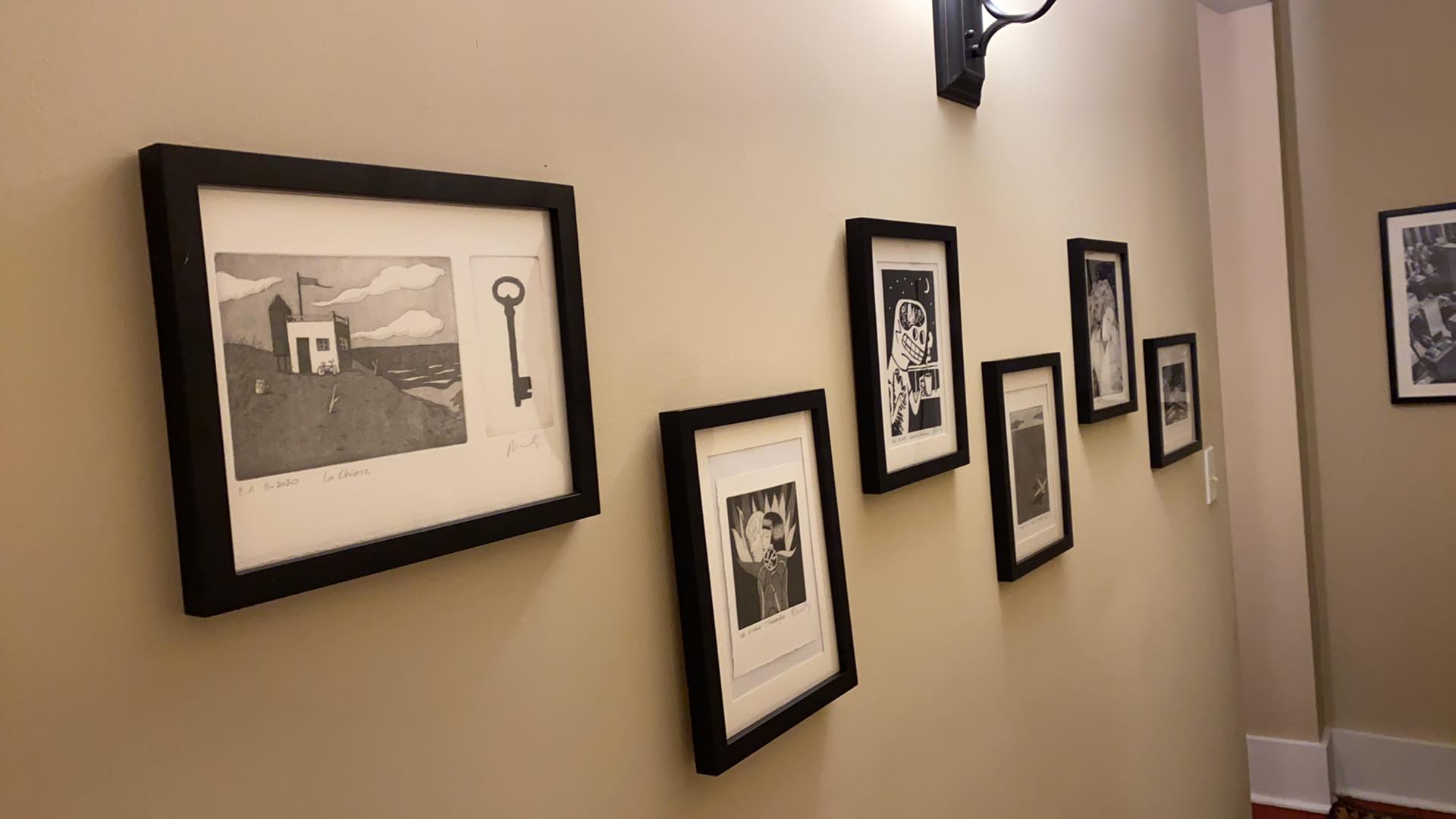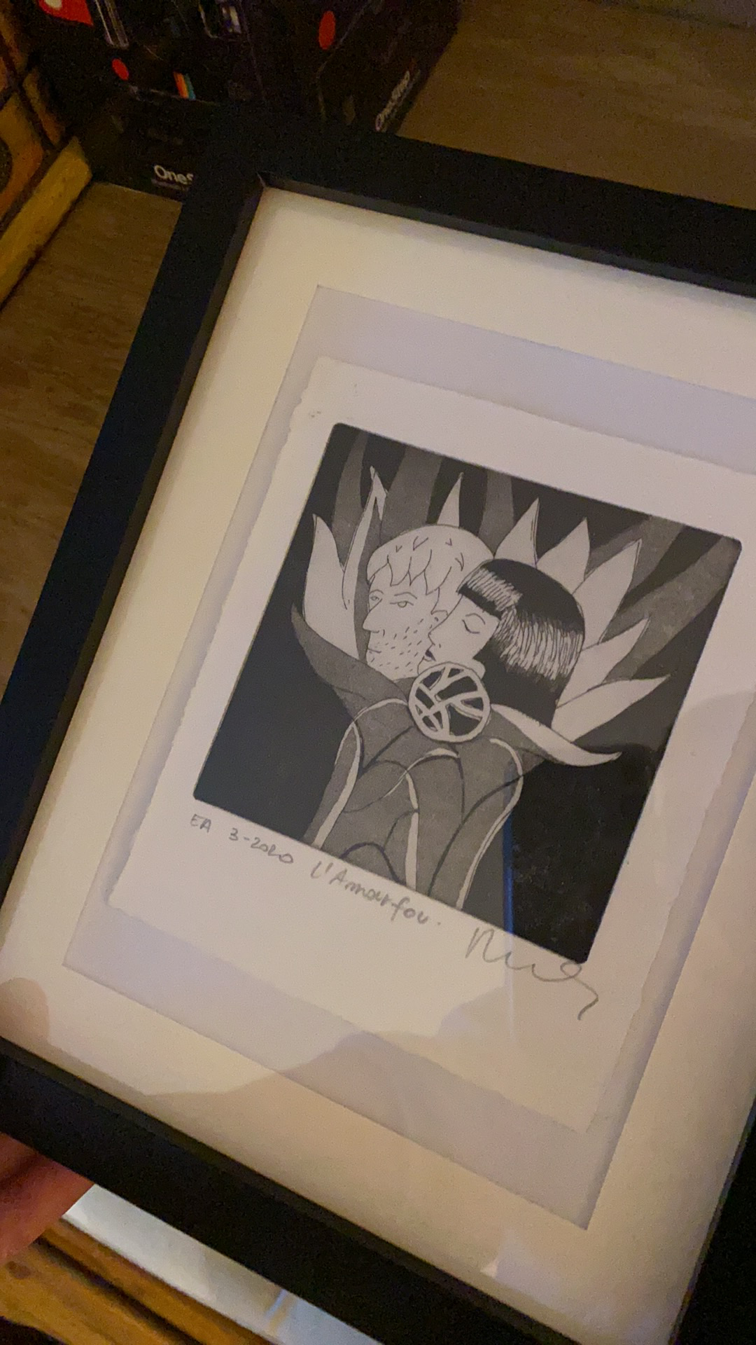 On hait bien la préparation (encadrement, passe-partout, accrochage) donc on procrastine. Mais c’est l’occasion de boire du vin au vernissage (et en 2024 de recevoir un prix) et de voir passer les potes. Leçon d’humilité aussi : en vérité tout le monde s’en fout et c’est très bien comme ça. Jusqu’ici surtout à l’atelier (on ne compte pas les expos permanentes chez les potes, salut Céline !).