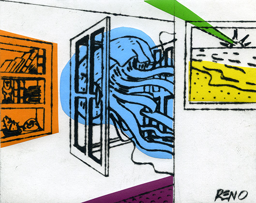 Novembre 2024: une de mes premières gravures (en chine collé) est reprise pour la couverture d’une édition italienne de l’argentin José Retik (merci au photographe-bouquiniste Raffaele de Milan pour cette jolie initiative!). C’est publié chez Arcoiris, maison d’édition italienne spécialisée dans la littérature latino-américaine (classique et contemporaine). La gravure à l’origine était une variation sur la Méduse d’air d’Henri Michaux (in: Au pays de la magie), avec un petit rayon vert à la Jules Verne aussi.