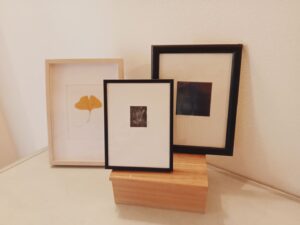 Une gravure de Monique Dohy, offerte à une amie pour un anniversaire. Je regrette de ne pas en avoir pris une bonne photo; c’était une composition bleue abstraite très très hypnotisante. Seule photo connue, c’est le cadre de droite (mais on ne voit que dalle):
