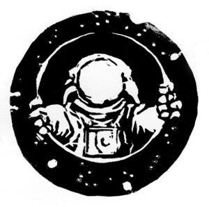 Elle a été réalisée par Juliette « la Punkette », alias Jeudi, qui a commencé en même temps que moi la gravure. C’était une très chouette copine d’atelier, partie ensuite faire de la librairie en banlieue parisienne (snif). Elle m’a aussi publié dans sa revue collective (voir rubrique « contagion »). On ne se voit pas assez, dernière fois c’était au café à côté du Père-Lachaise, et elle m’avait offert un super livre 3D, et j’ai encore une pile de livres cyberpunk 1980s à lui refiler. Voilà d’autres gravures que je suis parvenu à lui chiper à l’époque. Je trouve encore son logo « l’antre » incroyablement efficace, je rêve d’être aussi minimal et évident dans mes propres linos (j’en suis loin).