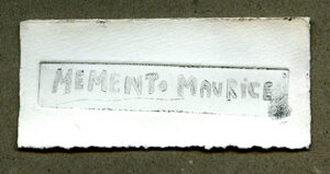 Premier échange, chouette souvenir de mes débuts à l’atelier, retrouvé en rangeant mon tiroir six ans après: cette mini-gravure (on récupérait à l’occasion des chutes de métal pour se mettre des messages dans les tiroirs): MEMENTO MAURICE.