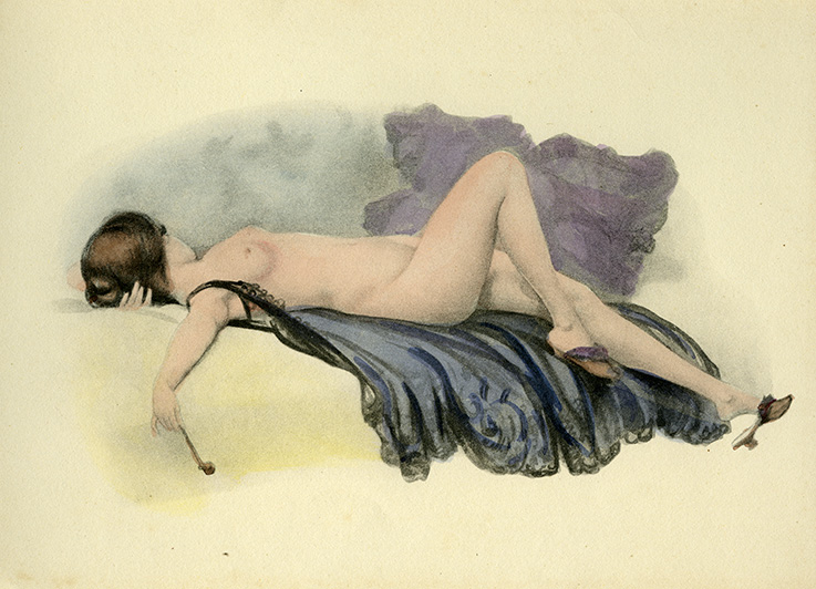 Puis, quatre impressions ‘galantes’. Aucune n’est une véritable gravure, mais ça va nous permettre de parler imprimerie avec l’ami Pierre. On allume sa lampe de bureau, on déplie son compte-fil (surplus de l’armée soviétique), et au boulot.