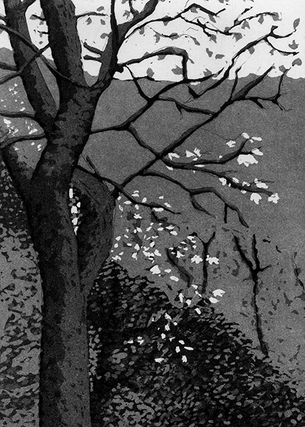 Et bien sûr une feuille de mon alter-ego arbre, le Gincko (pas facile, le jaune en aquatinte sur zinc : il vire au vert) ; celui du jardin ou celui de la Porta Elisa à Lucca.