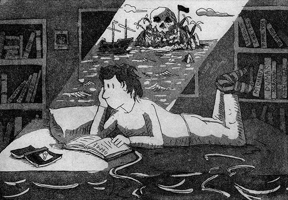 De ma jeunesse sans télévision, j’ai hérité d’un fanatisme pour les livres et la lecture. Classiques d’aventure jaunis, dévorés au kilomètre à plat ventre sur mon lit durant les vacances scolaires, qui ont forgé un imaginaire surrané et en décalage certain (d’où peut-être mon asocialité latente). Depuis, je lis et j’empile des livres (avec une préférence pour les éditions d’avant le code-barres, bien entendu).