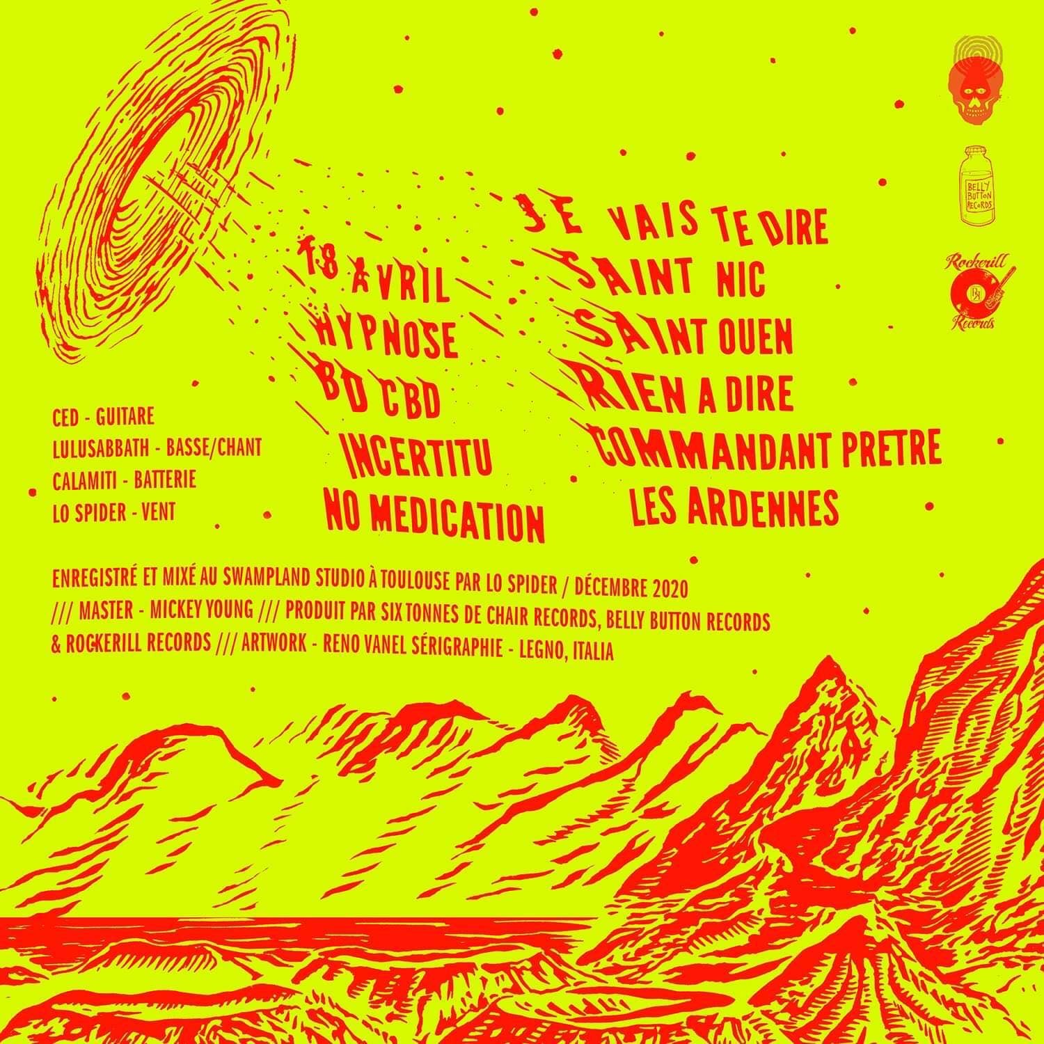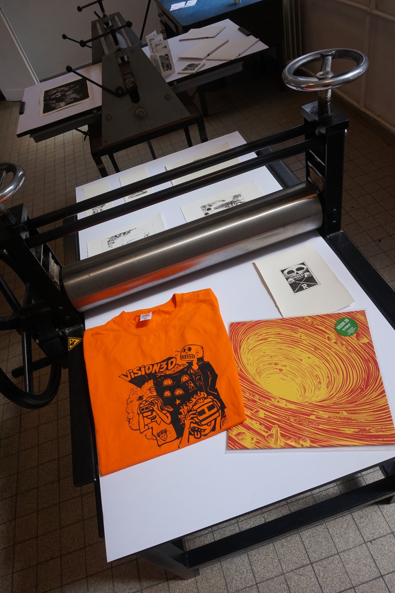 La pochette de leur second 33T, Hypnose, une lino tirée ensuite en sérigraphie. Resté quelques mois en vitrine de 72Records (rue du Midi), et référencé sur Discogs, ce qui assure mon éternité. Merci Lulu !